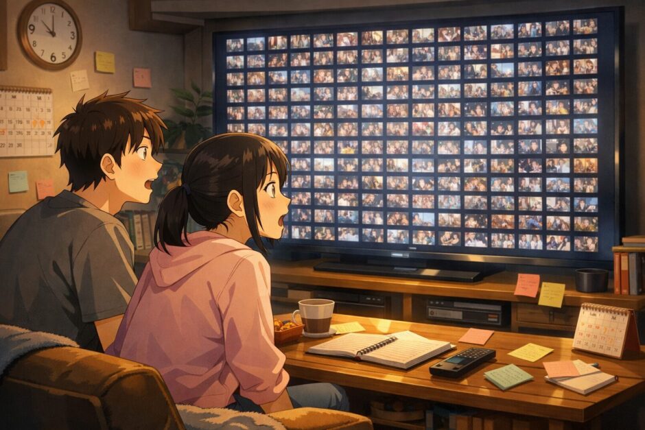 この約544時間という数字は、不眠不休で視聴し続けても約23日間かかる計算です。現実的に1日2時間ずつ毎日欠かさず見たとしても、完走までには約9ヶ月もの期間が必要になります。まさに大人の自由研究並みのボリュームですね。もちろん、これはオープニングやエンディング、さらには次回予告までしっかり見た場合の数字ですが、それでも圧倒的です。